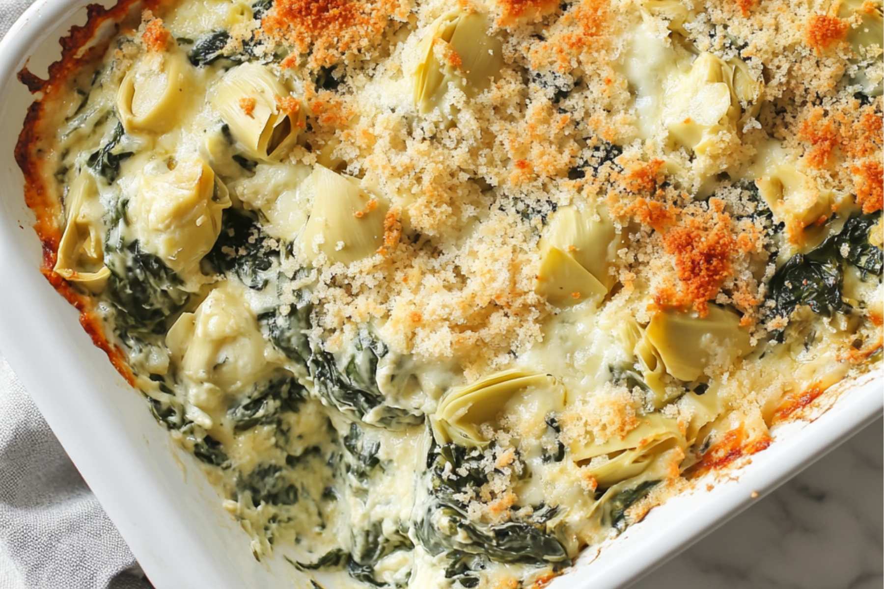 Spinach and Artichoke Casserole is a creamy, flavorful dish that feels a bit fancy but is so easy to make. I love how the combination of spinach, artichokes, and cheese creates a rich, comforting meal that’s perfect for any occasion. It’s a great way to get some greens into my kids without them even realizing it! Whether we’re having it as a side dish or a main, this casserole always disappears fast. It’s one of those recipes that’s simple but full of flavor, and always makes dinner feel a little more special.